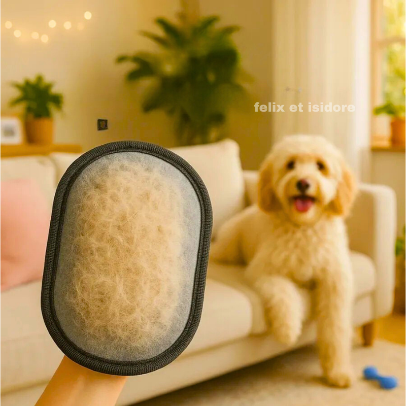 Avec le Gant Anti-Poils™, aucun poil ne vous échappe, même sur les surfaces qui les camouflent.